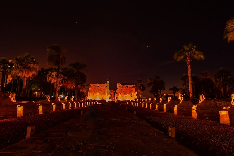 Es una experiencia nocturna donde se proyectan luces de colores sobre las ruinas milenarias del Templo de Karnak, uno de los más importantes y majestuosos de todo Egipto. Mientras las luces transforman las estructuras, una narración (disponible en varios idiomas, incluido el español) te guía por la historia del antiguo Egipto, sus dioses, faraones y las hazañas del pasado.
