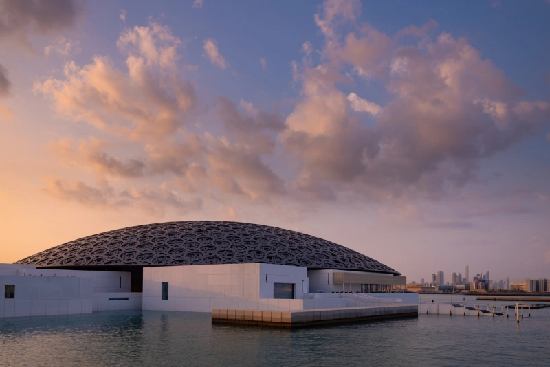 El Louvre Abu Dhabi, centinela cultural desde 2017, corona sus 24.000 metros cuadrados con una cúpula de metal que tamiza la luz del desierto en patrones hipnóticos. Este santuario del arte representa la mayor empresa cultural francesa más allá de sus fronteras.